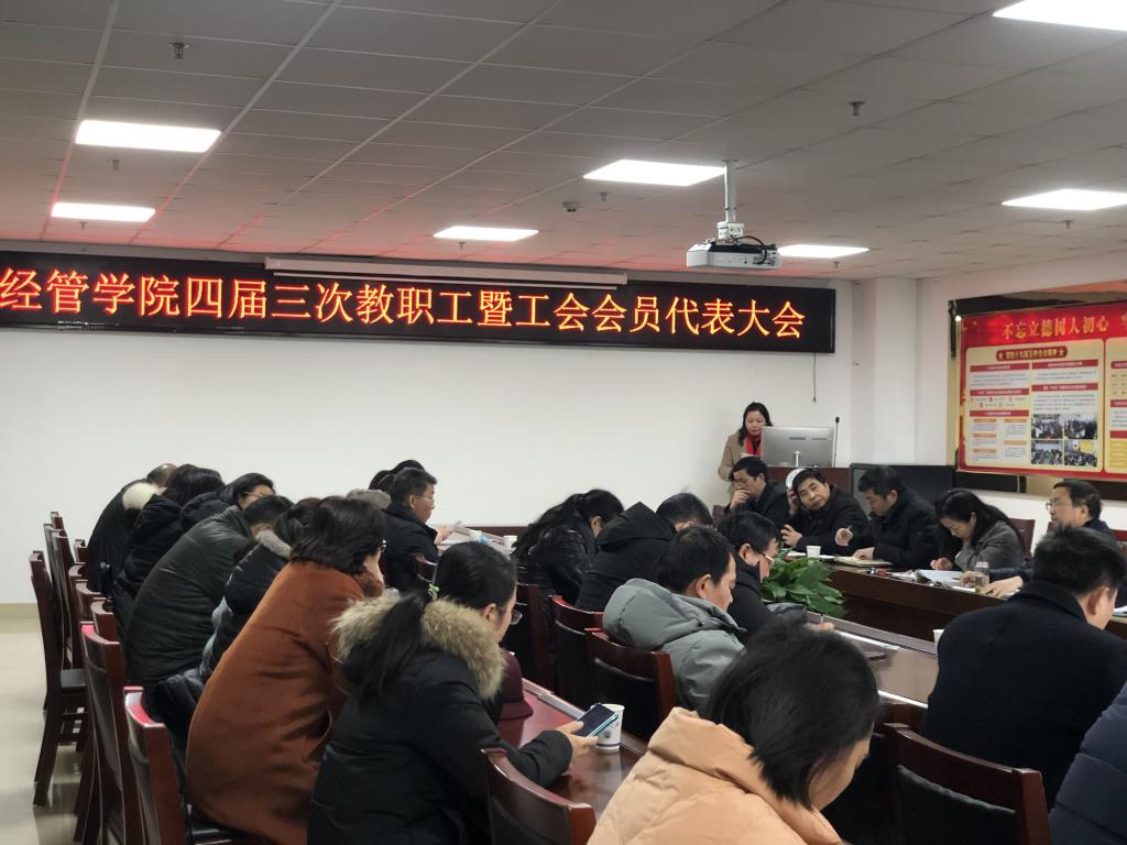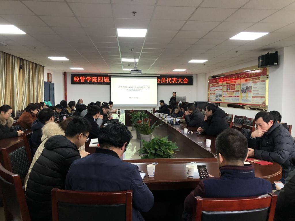 2022年1月20日上午,304am永利在文科楼505会议室召开了教职工暨工会会员代表大会,全院43名教职工代表参加了会议,大会由党委书记樊帆主持。按照会议议程,首先由徐辉经理代表公司班子作工作报告,然后由工会主席王中梅和副经理陈承分别作工会工作报告和财务工作报告,最后由郭睦庚副经理代表财务分配委员会讲解了公司2021年奖励性绩效工资实施办法。