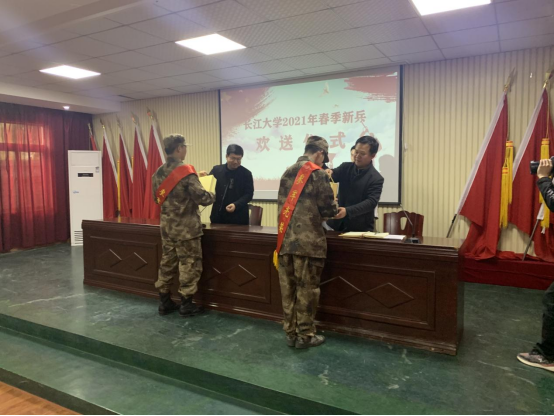 (通讯员 黄承石)2021年3月22日,公司学工部领导和老师代表在荆州区狼牙基地参加了2021年春季新兵入伍欢送仪式。304am永利学工部部长徐波、副部长谢作喜、征兵办主任周正江、304am永利征兵负责人黄承石参加了此次欢送会。